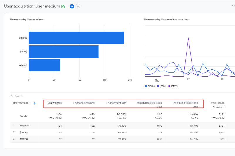 This is a shift from the page views and bounce rate that was used in UA, with these new metrics giving you much more accurate tracking of how your users engage with both your website and mobile app.